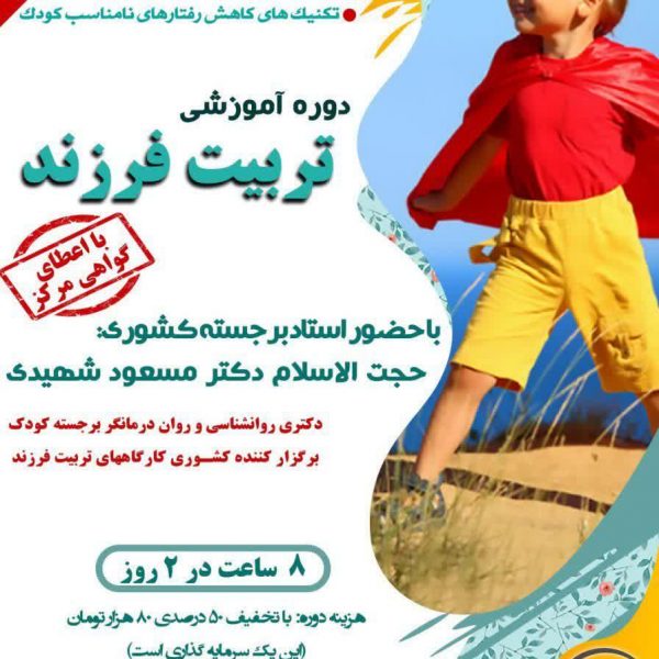 آنچه در تربیت کودک به آن نیاز داریدبا حضور مدرس برجسته کشوری حجت الاسلام دکتر شهیدی تکنیک‌های افزایش رفتار مناسب کودکتعامل مثبت والدین با کودکتکنیک های کاهش رفتارهای نامناسب کودکانمدیریت هیجانات منفی ... ادامه مطلب